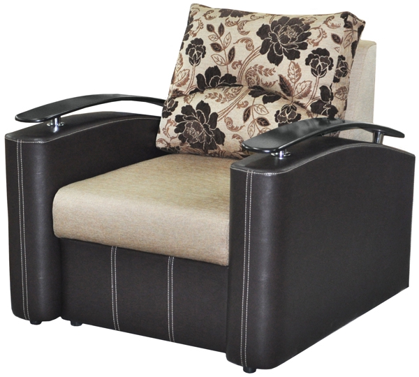Удобное кресло в современном стиле. В основании сиденья латы и эластичный пенополиуретан. Декоративные накладки на подлокотниках. В основании кресла присутствует емкость для хранения постельных принадлежностей. Подлокотники съемные.